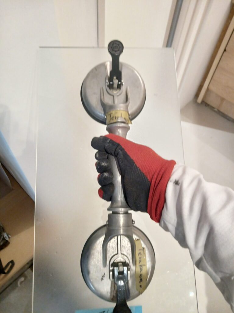 〇大判ガラス割れもご相談ください!厚みや重量によりますが2㎡以内はご対応可能です!(高所作業の必要ない場合のみ)