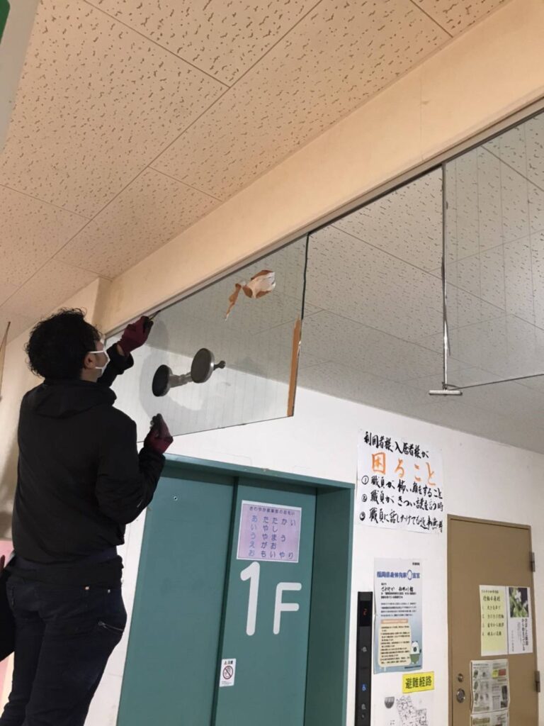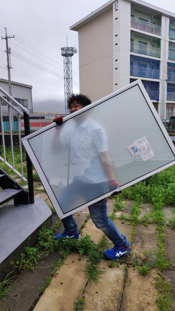 大判ガラス割れもご相談ください。厚みや重量によりますが2㎡以内はご対応可能です。(高所作業の必要ない場合のみ)
