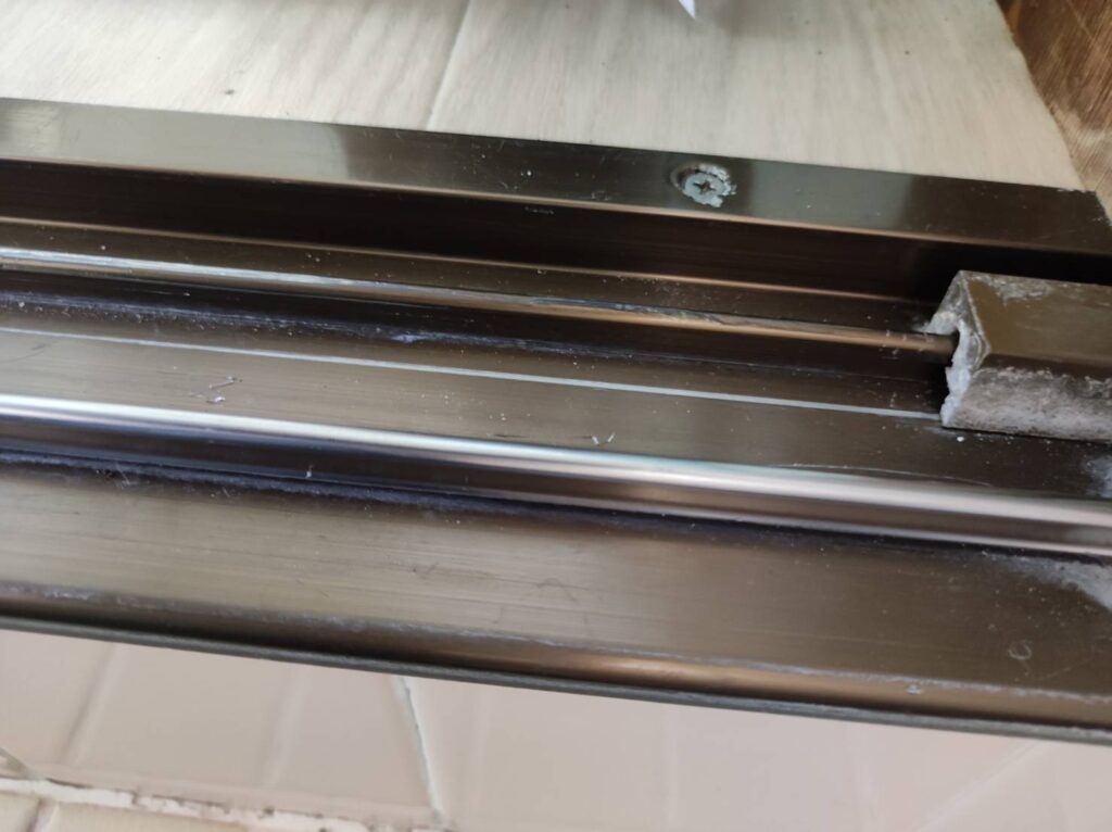 削れたレールに新しいレールカバー材を被せて新品同様にまで補修しました。