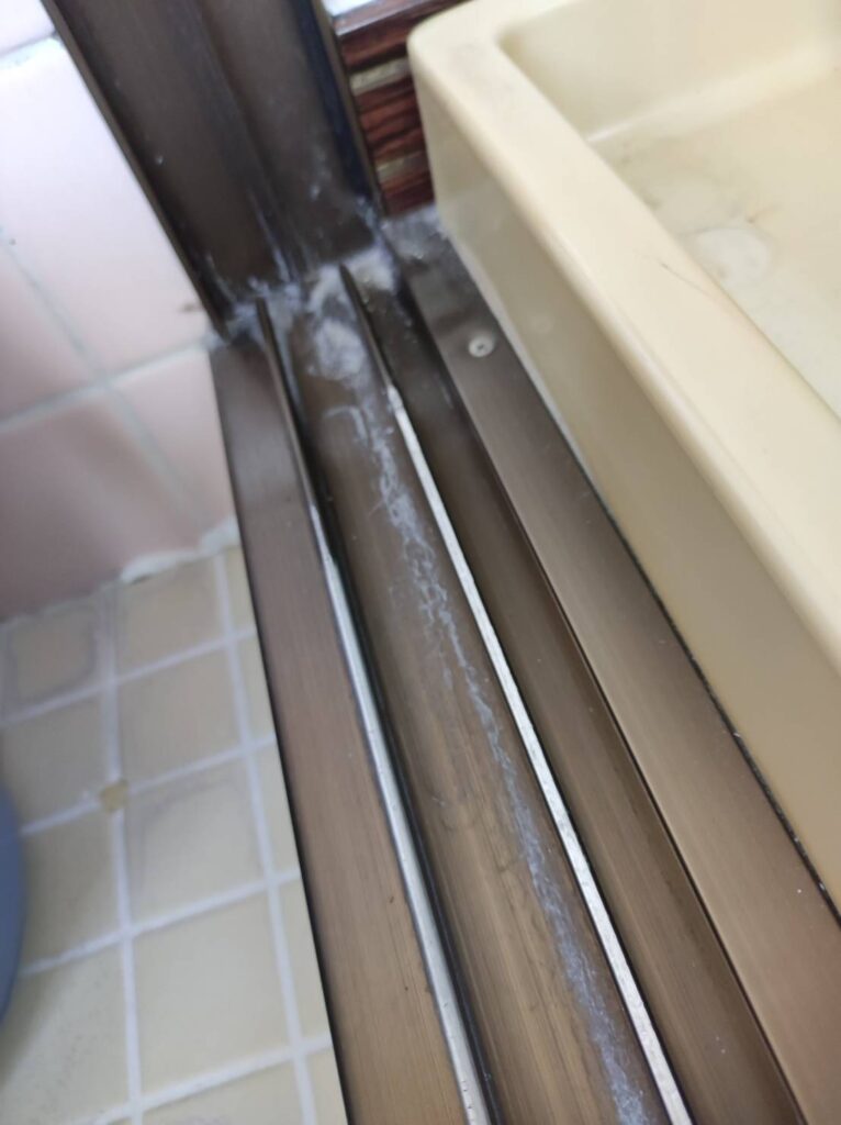 浴室引戸の戸車が破損したまましばらく使い続けているうちに、サッシレールが削れて引戸が動かなくなったようで、どうにかならないかとご相談を頂きました。