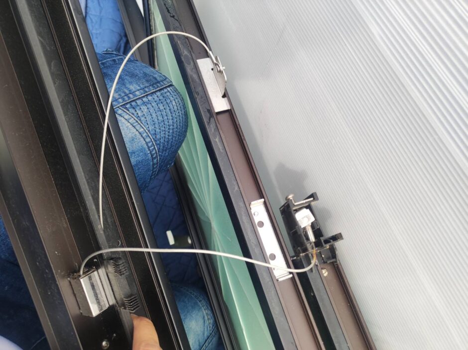 通風ドアは上下の窓部分とドア枠はワイヤーやギアで連動していますから、ドア枠を分解したらワイヤーの連結を外していく必要があります。
